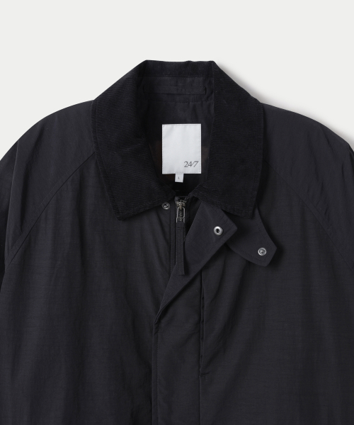 탈착 가능한 넥라인 스트랩을 적용하여 칼라 스타일을 자유롭게 연출하실 수 있습니다. 코듀로이 배색을 더해 동시대적이면서도 클래식한 이미지를 강조했으며, 다양한 스타일링이 가능합니다.