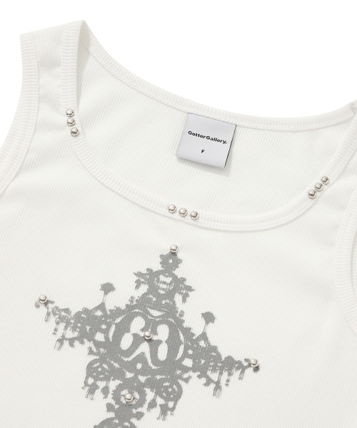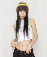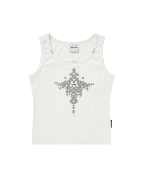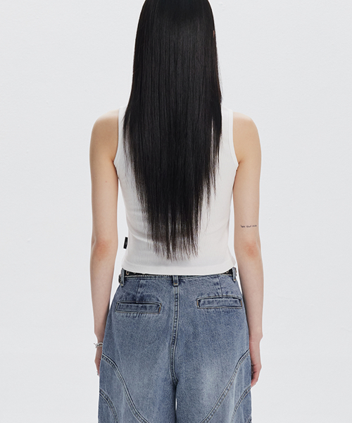 WXT025 튤립 스티치 배색 슬리브리스 (WHITE)