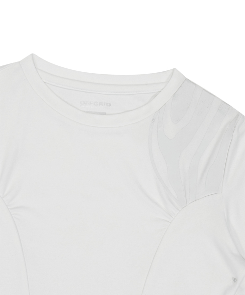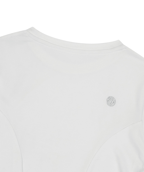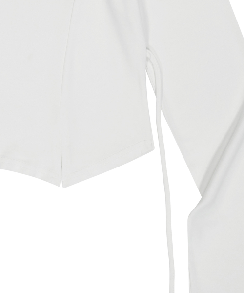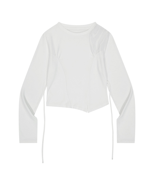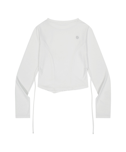 셔링 크롭 롱 슬리브 티셔츠-화이트