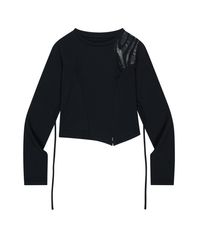 셔링 크롭 롱 슬리브 티셔츠-블랙