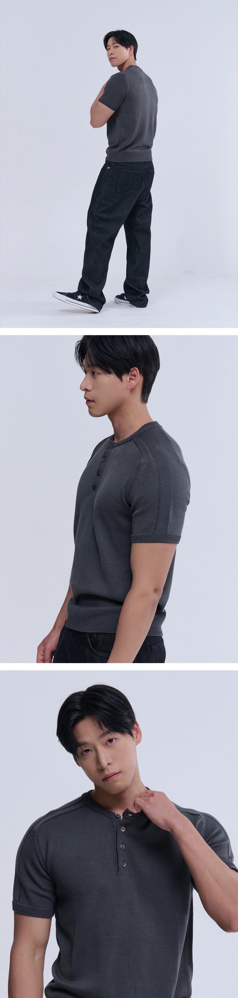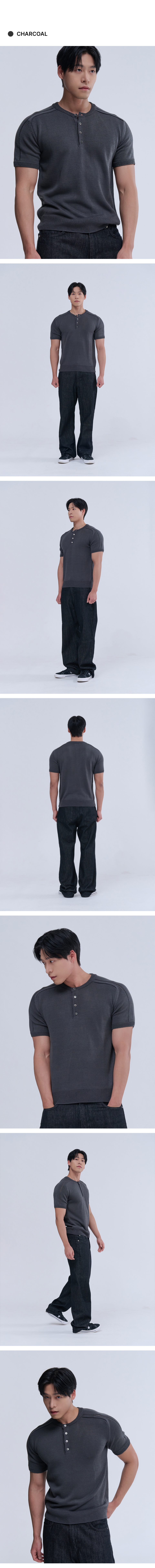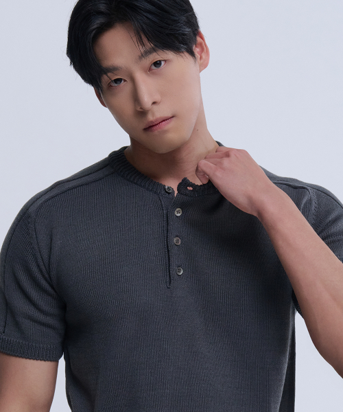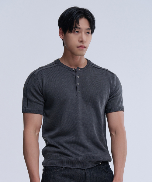 헨리넥 반팔 머슬 니트 (차콜)