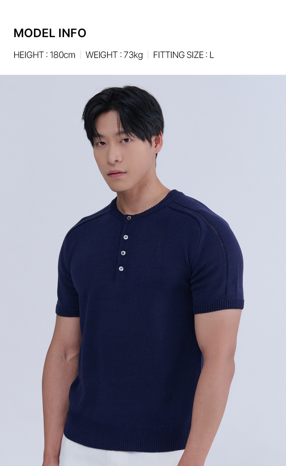 헨리넥 반팔 머슬 니트 (네이비)