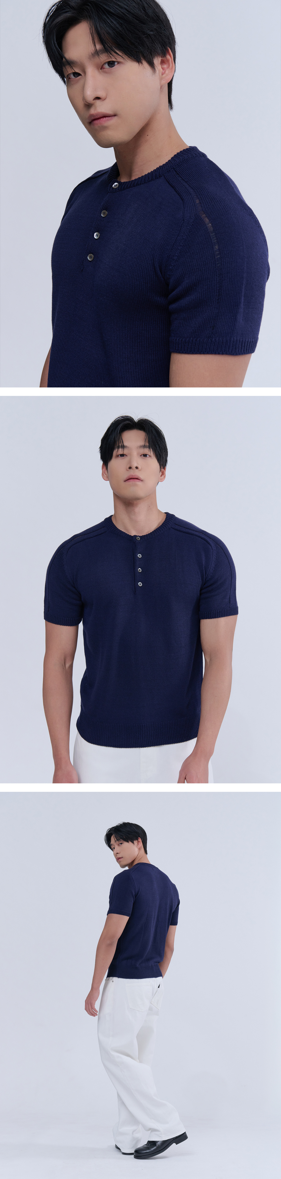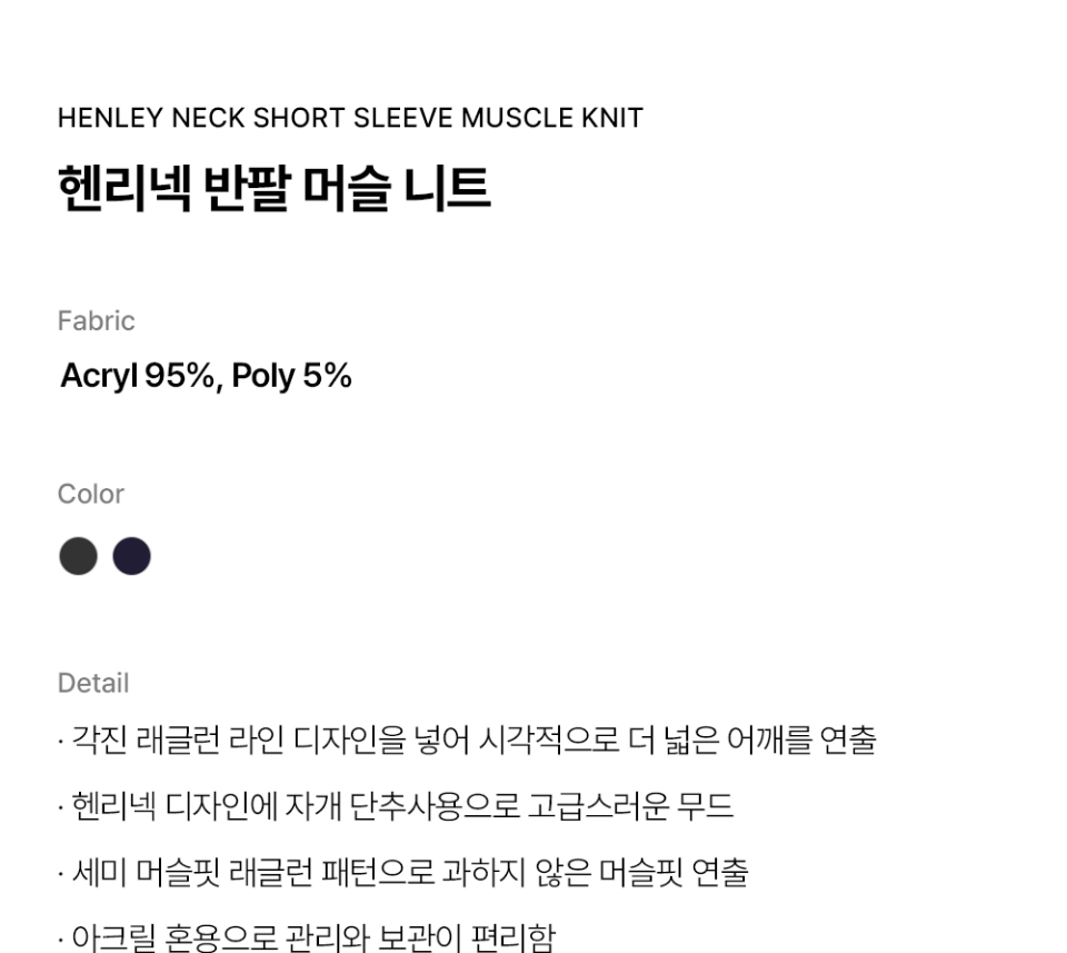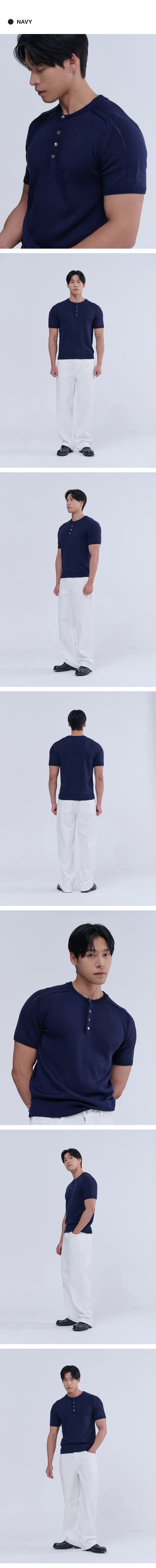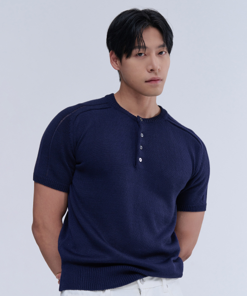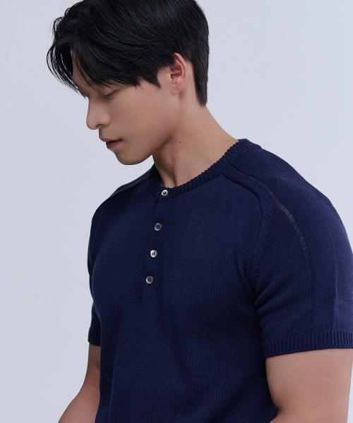 헨리넥 반팔 머슬 니트 (네이비)
