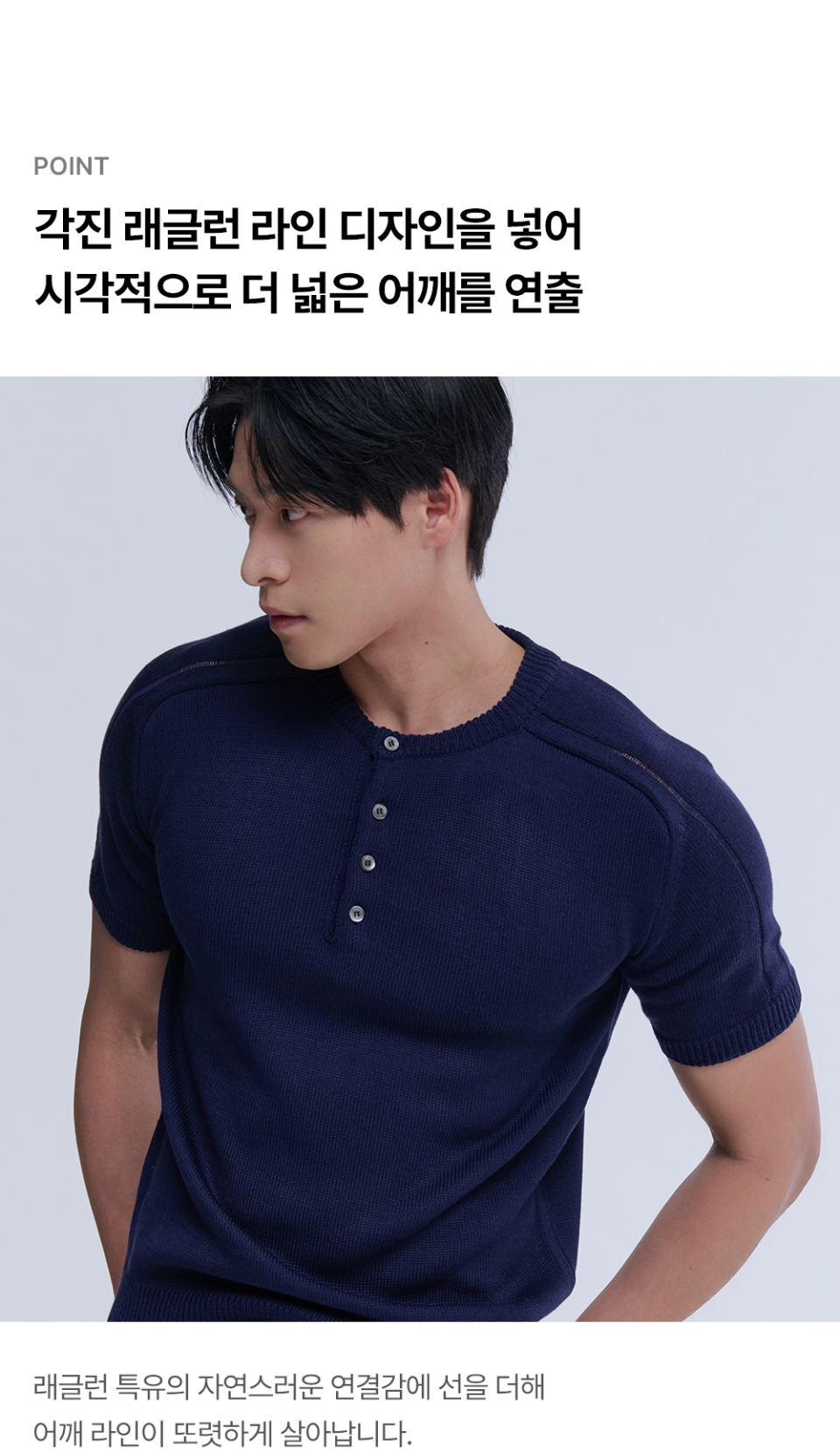 어깨 절개 머슬핏 헨리넥 하프 슬리브_5color