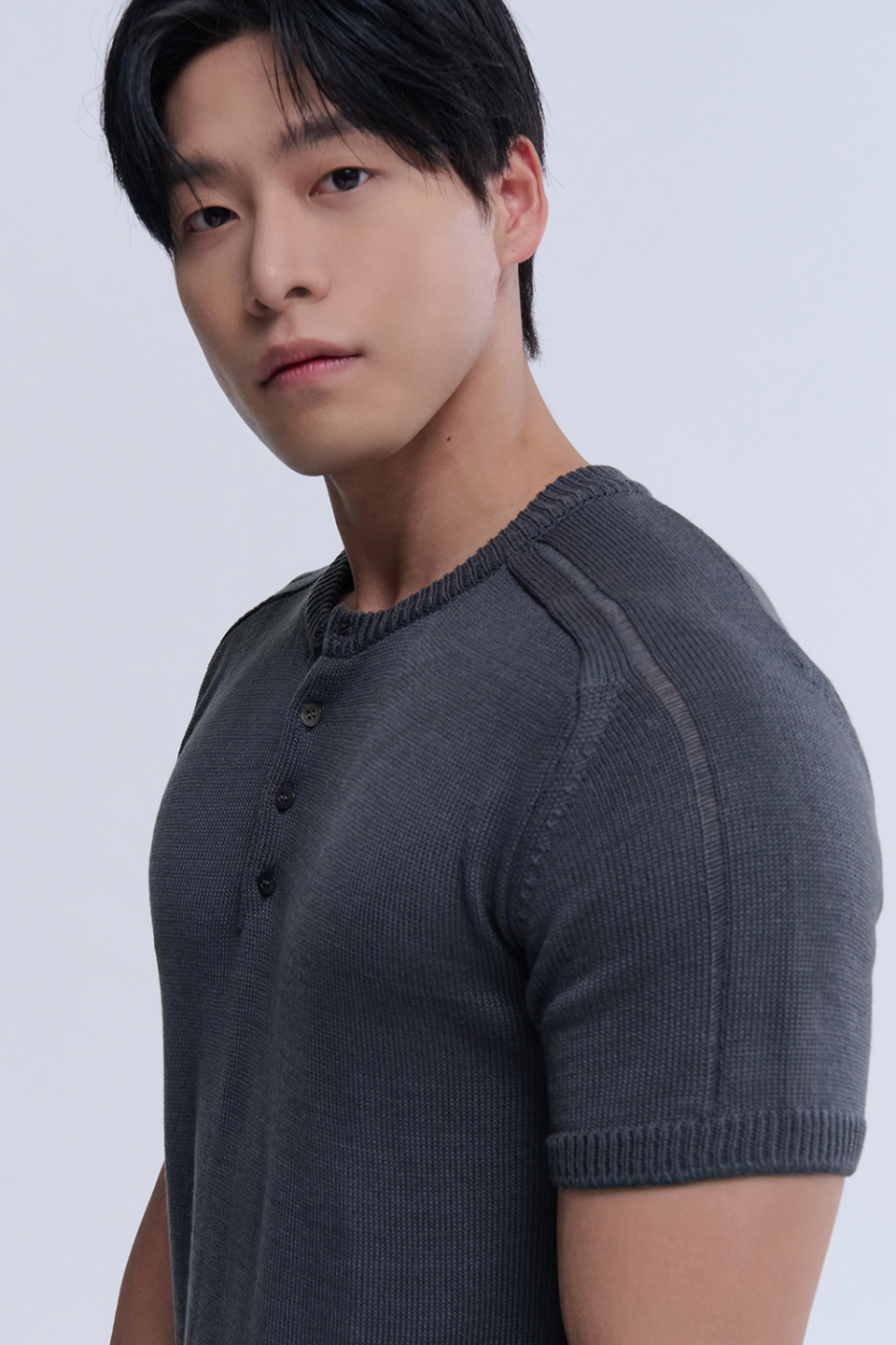 헨리넥 반팔 머슬 니트 (차콜)