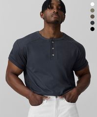 립브드 머슬핏 헨리넥 하프 슬리브_5color