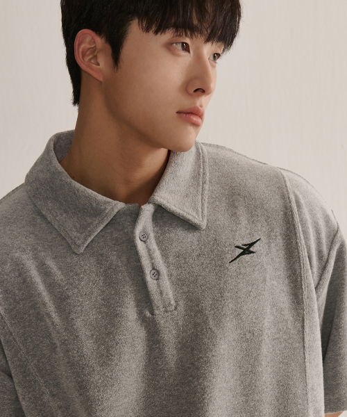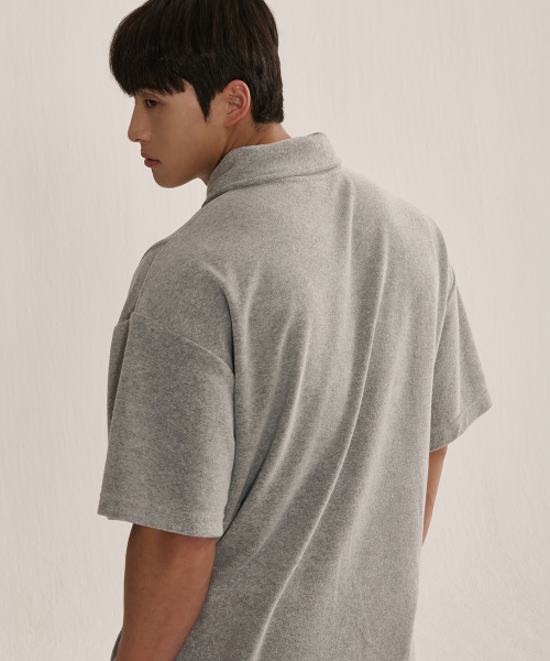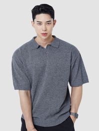 소프트 부클 오버핏 카라 니트 (멜란지 블랙) 24NTS01