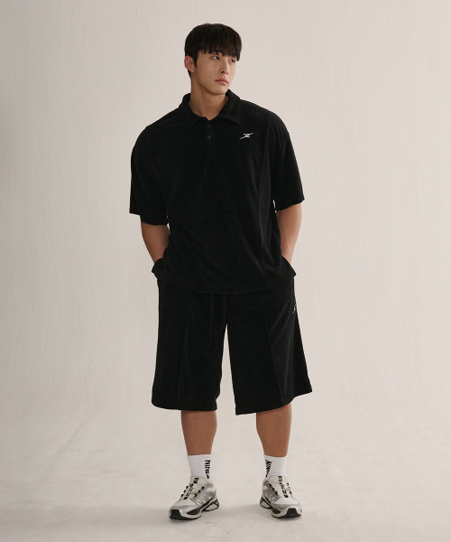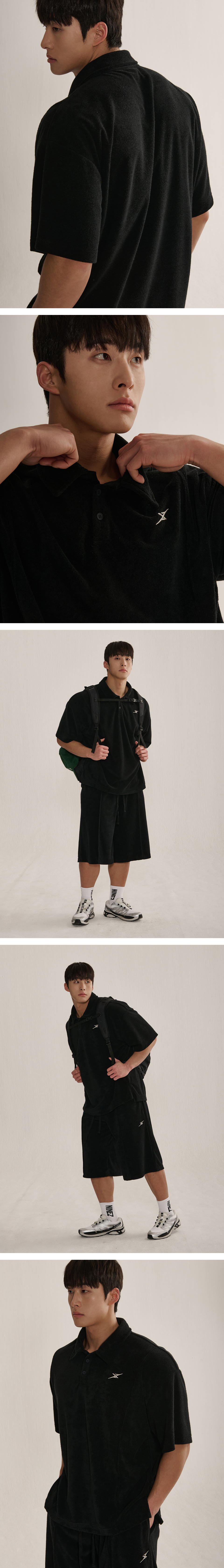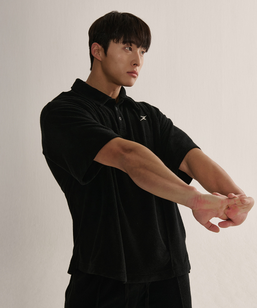 MUSCLE FIT COLLAR T-SHIRTS [BLACK]