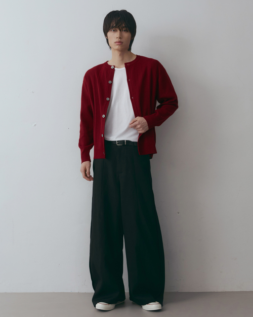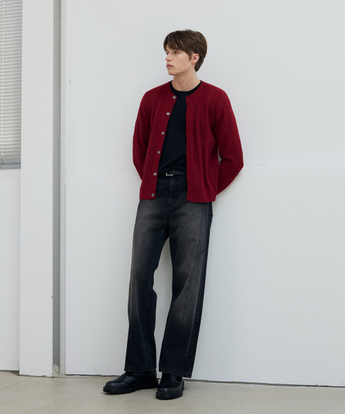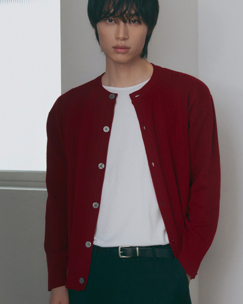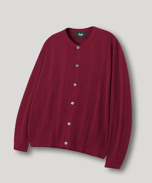 노즈 골지 라운드 소프트 가디건 [다크레드]