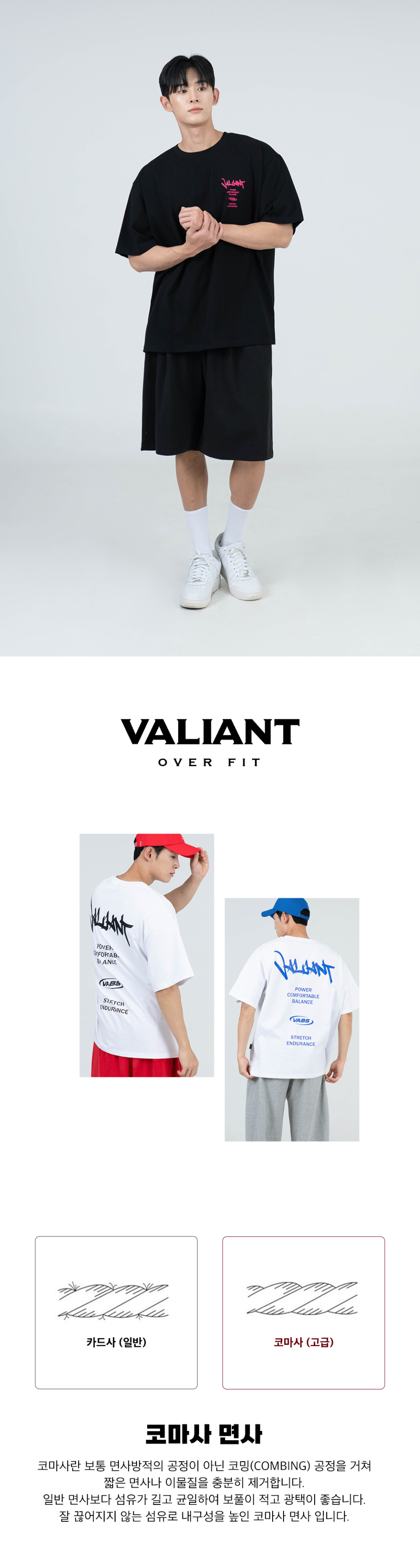발리안트(VALIANT)는 '용맹한' '단호한'이란 뜻을 품고 있으며 편안한 오버 핏에 날을 세운 디자인으로 멋을 더하는 짐 웨어&스트릿 패션을 지향합니다.