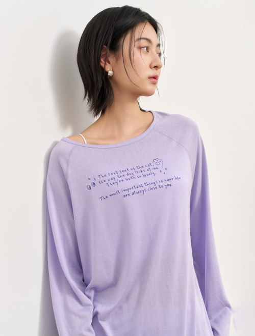 래글런 레터링 루즈핏 티셔츠 [LAVENDER] / WBE2L01528