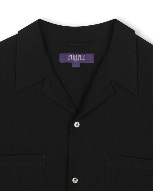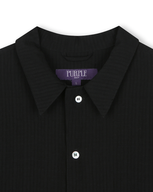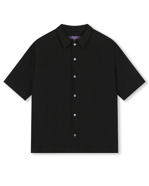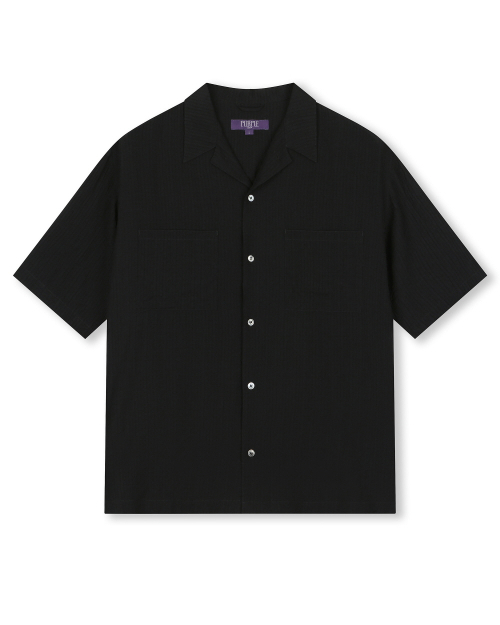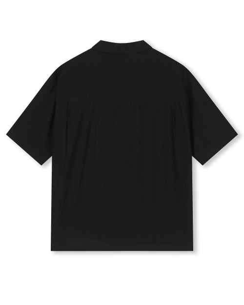 CRINKLE TEXTURE HALF SHIRTS BLACK