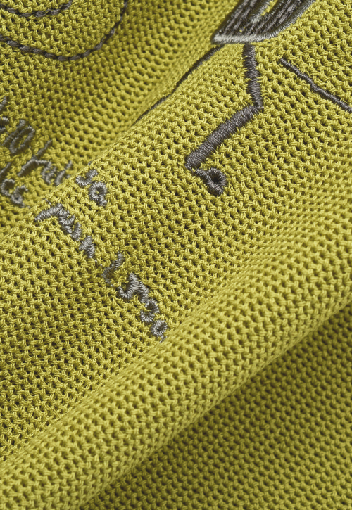 - 시즌 아트워크 다다이즘을 주제로 한 다양한 텍스쳐감과 입체감이 느껴지는 등판 자수 장식