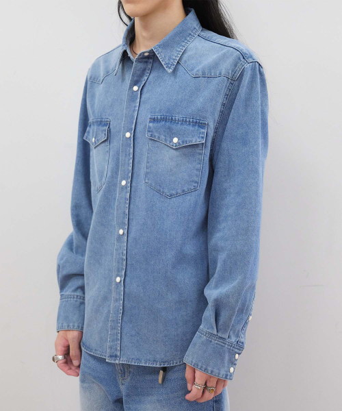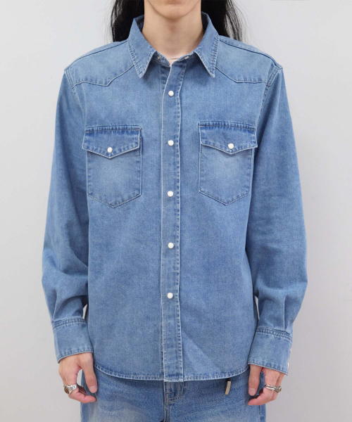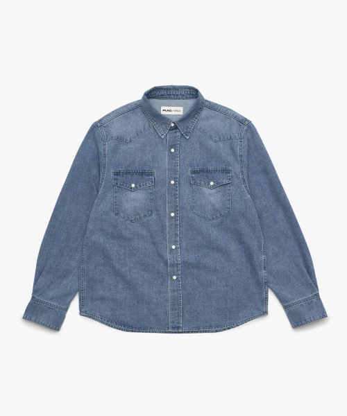 [메르고X플랙] 클래식 웨스턴 데님 셔츠 K52 블루