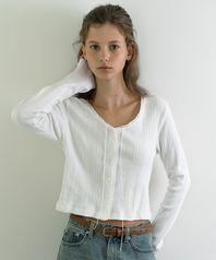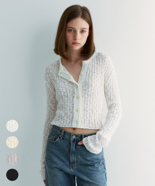 로제 펀칭 패턴 가디건 - 아이보리