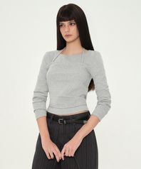 우먼즈 홀터 스트링 레이어드 긴소매 티셔츠 [미디엄 그레이]