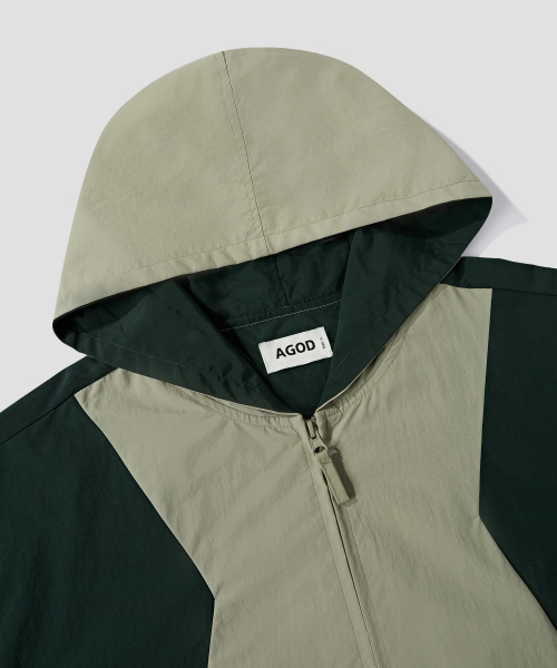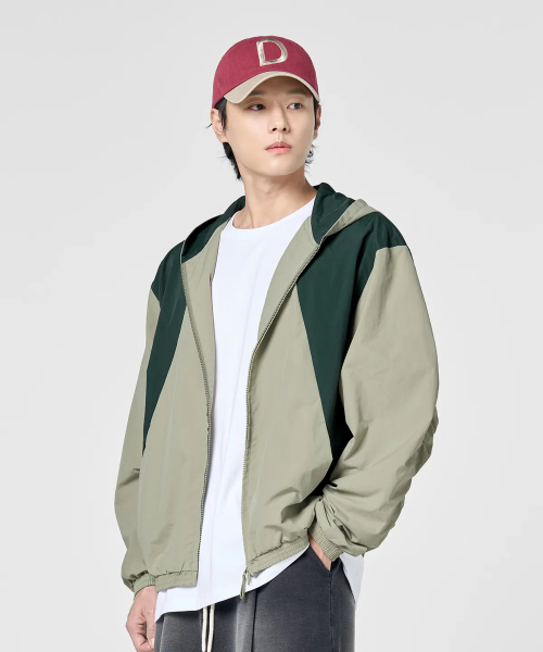 사이드 절개 투톤 윈드 브레이커 [라이트카키]