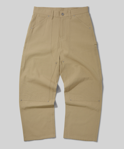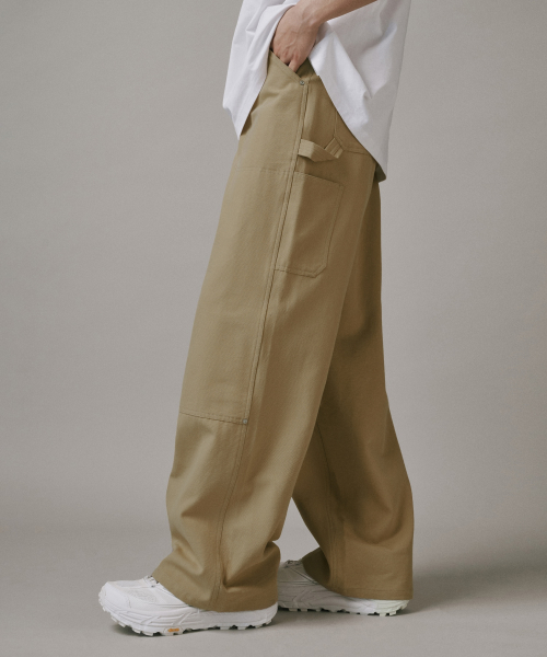 더블 레이어 카펜터 와이드 코튼 팬츠 [베이지]