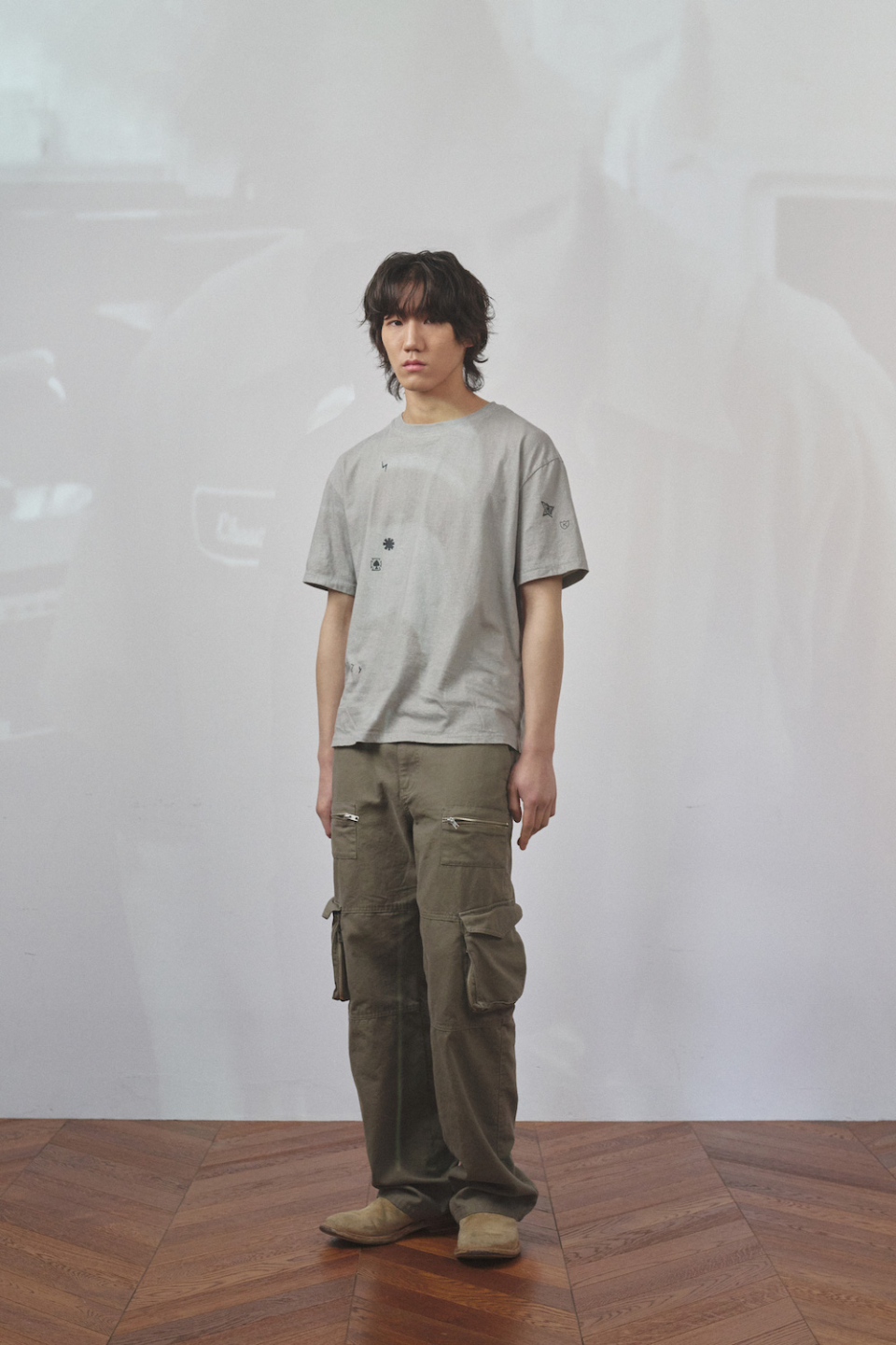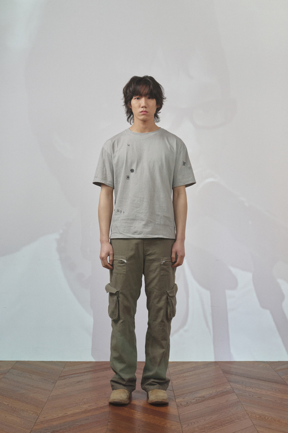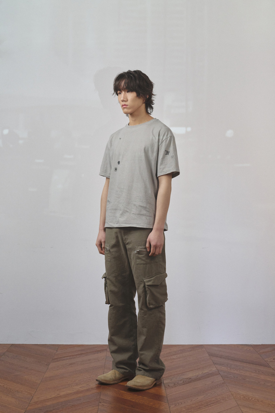 스트레이트 핏으로, 가먼트 워시드 가공을 통해 불규칙적으로 무너진 카고포켓의 실루엣이 매력적인 제품입니다.