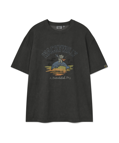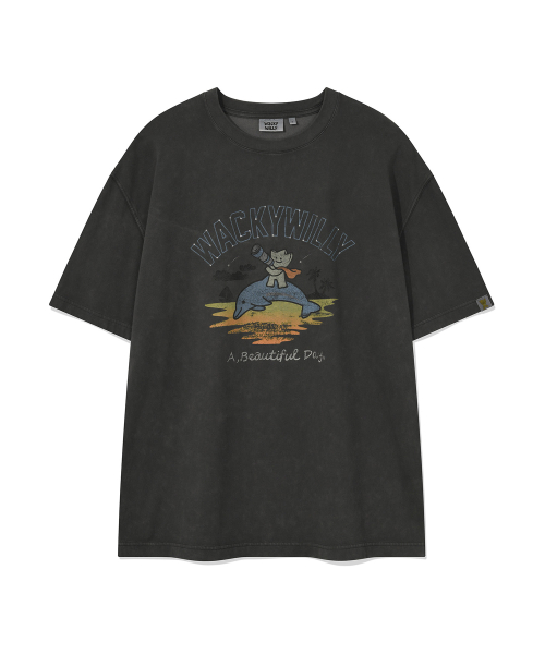 키키 앤 돌핀 그래픽 반팔 티셔츠 차콜
