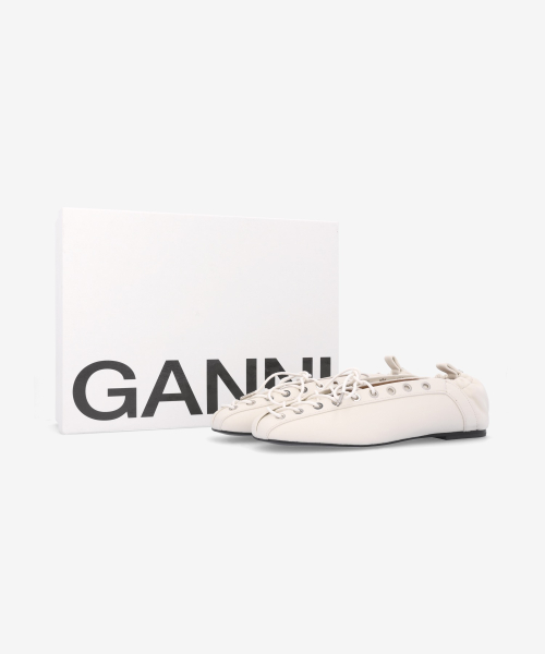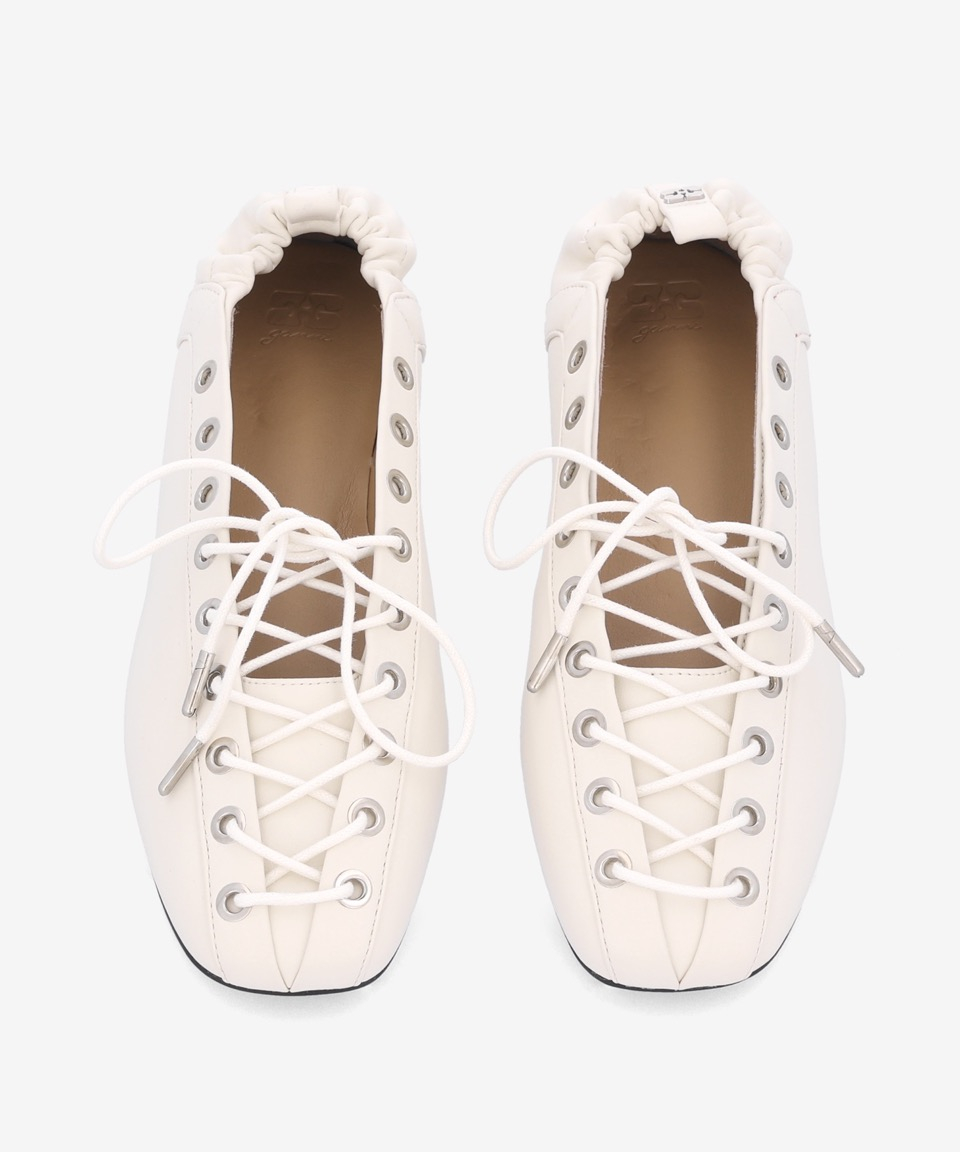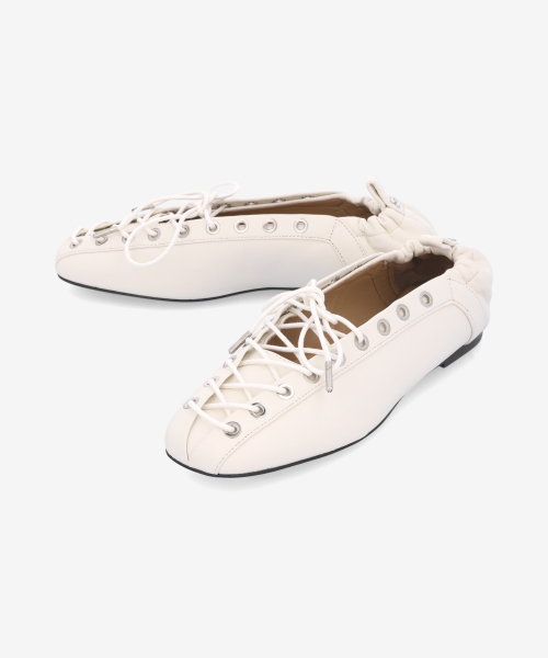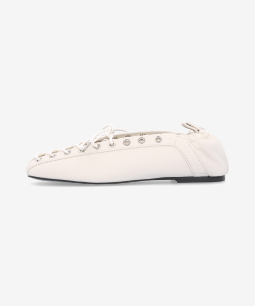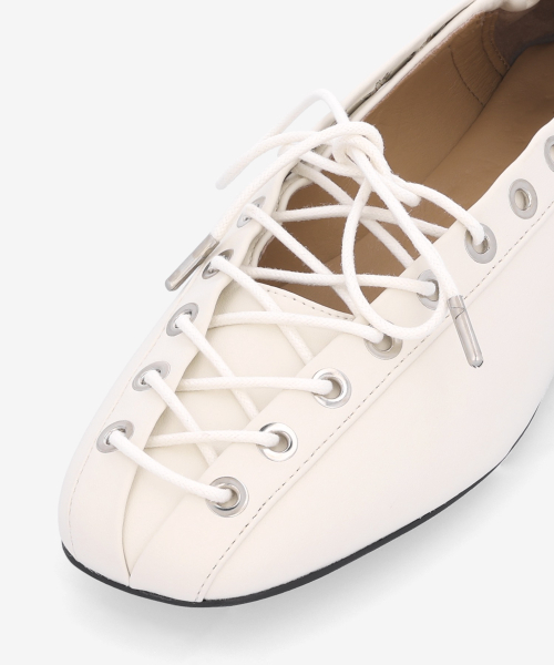 아일렛 레이스업 발레리나 플랫 슈즈 - 에그렛 / S2962135
