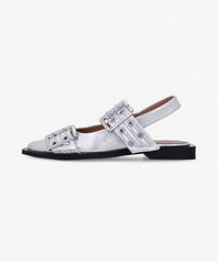 페미닌 버클 발레리나 메탈릭 플랫 슈즈 - 실버 / S2725018