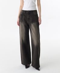 우먼즈 빅 브러쉬 엑스트라 와이드 데님 팬츠 [러스티 블랙]