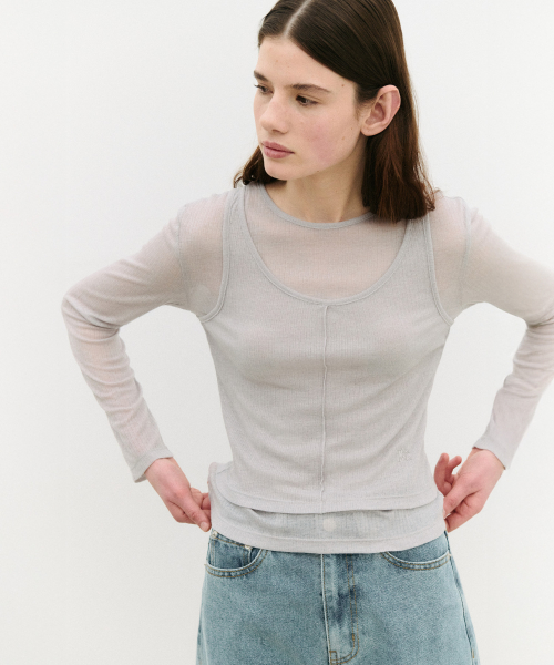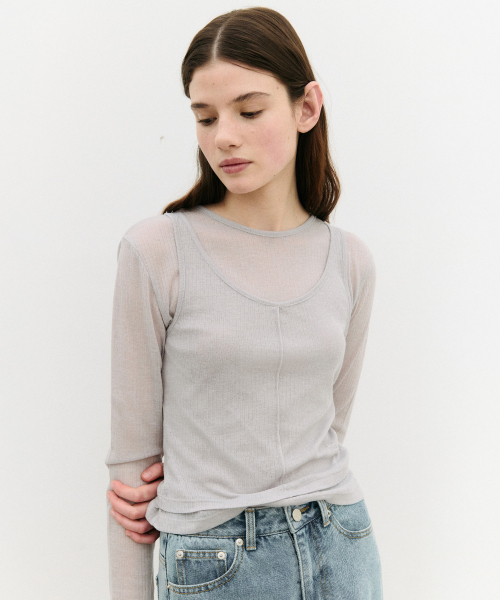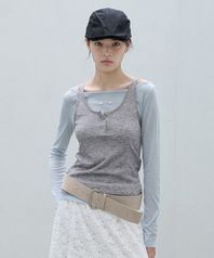 SLEEVELESS LAYERED T-SHIRT SET BL+GY