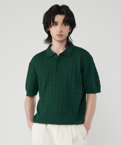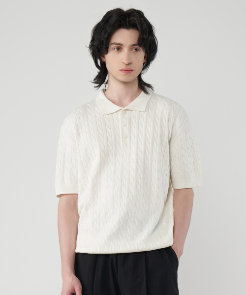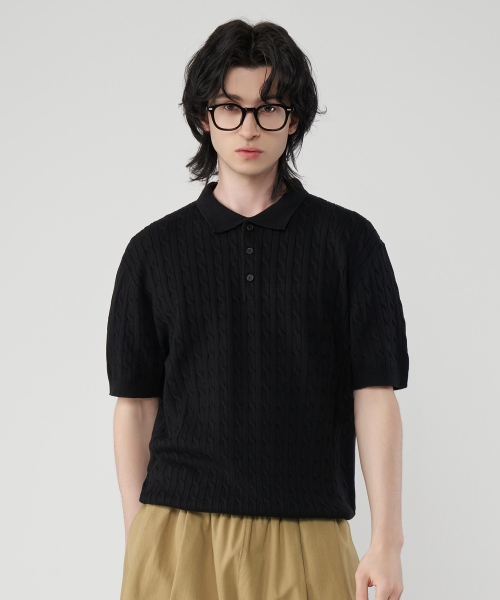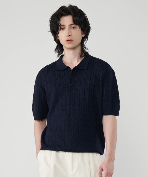 워셔블 쿨 코튼 케이블 반팔 카라 니트 4Color
