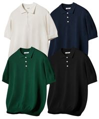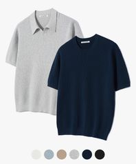 워셔블 쿨 코튼 반팔 카라 니트 4COLOR