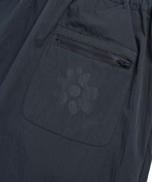 뒤 엉덩이 포켓에 나염 프린팅과 비슬론 지퍼 디테일이 있습니다.