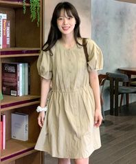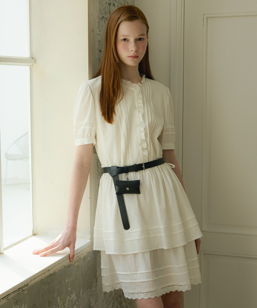 코튼 미니 플레어 핀턱 원피스 OW5MO5500