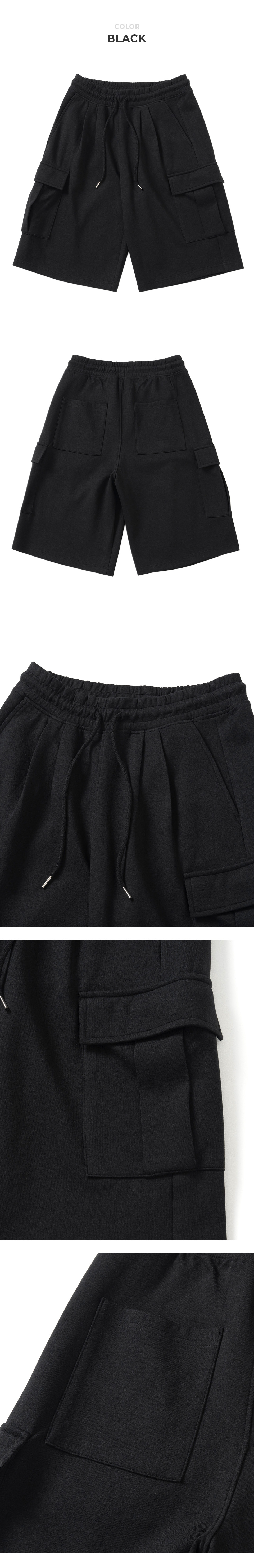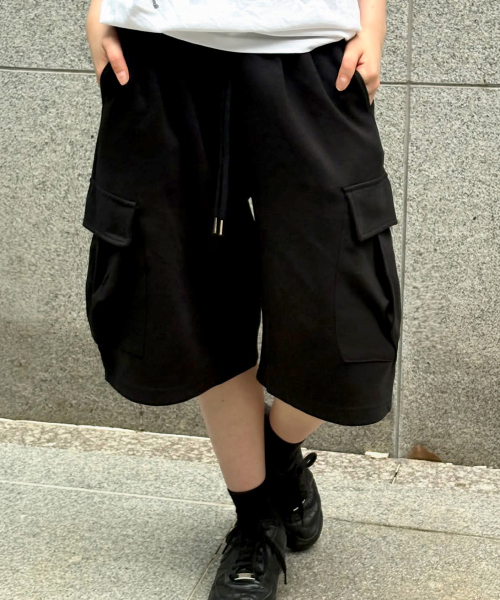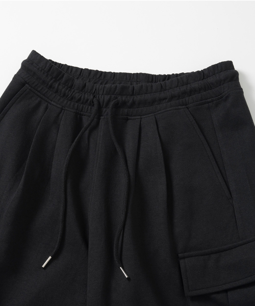 버뮤다 와이드 카고 스웨트 쇼츠[BLACK]