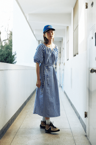 스트라이프 퍼프 썸머 래글런 원피스 (블루)