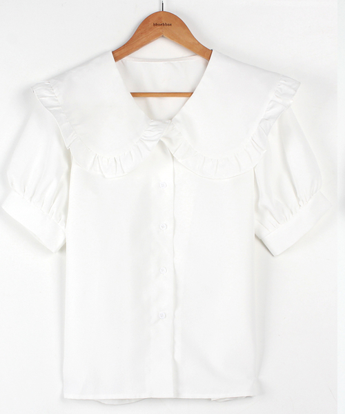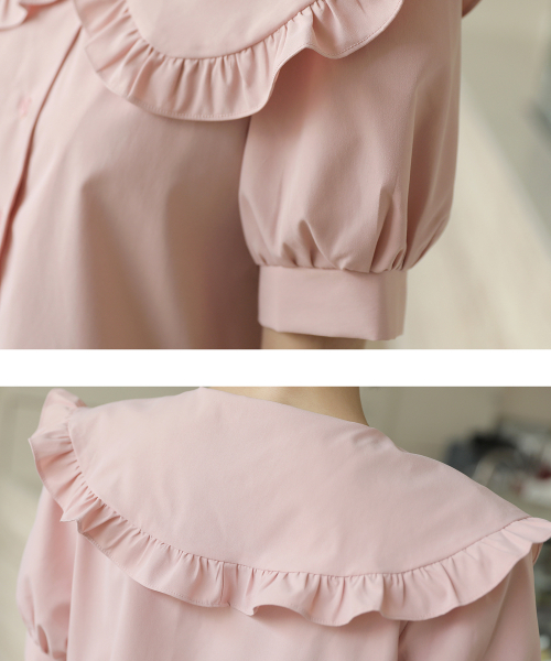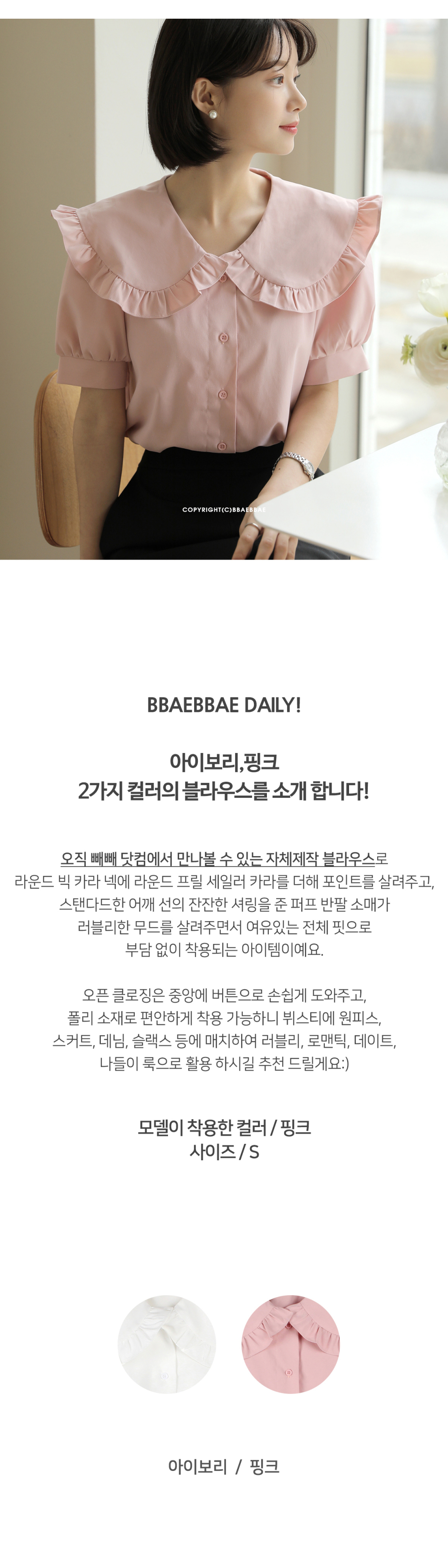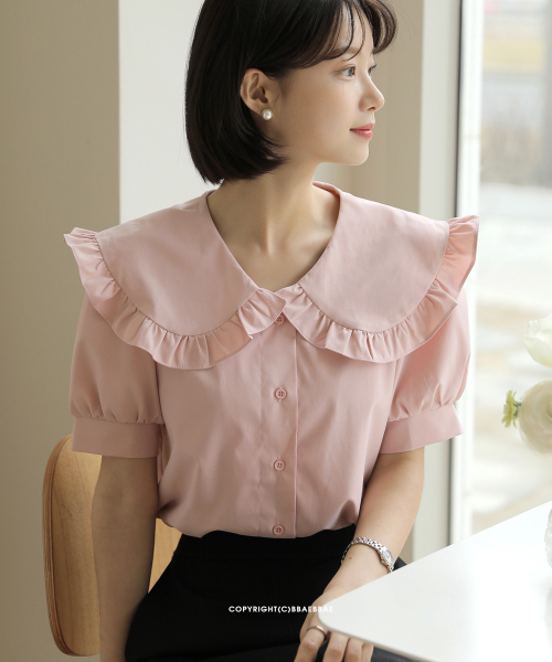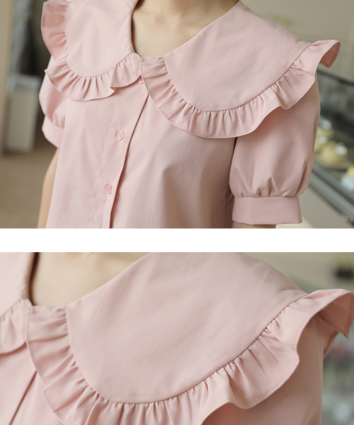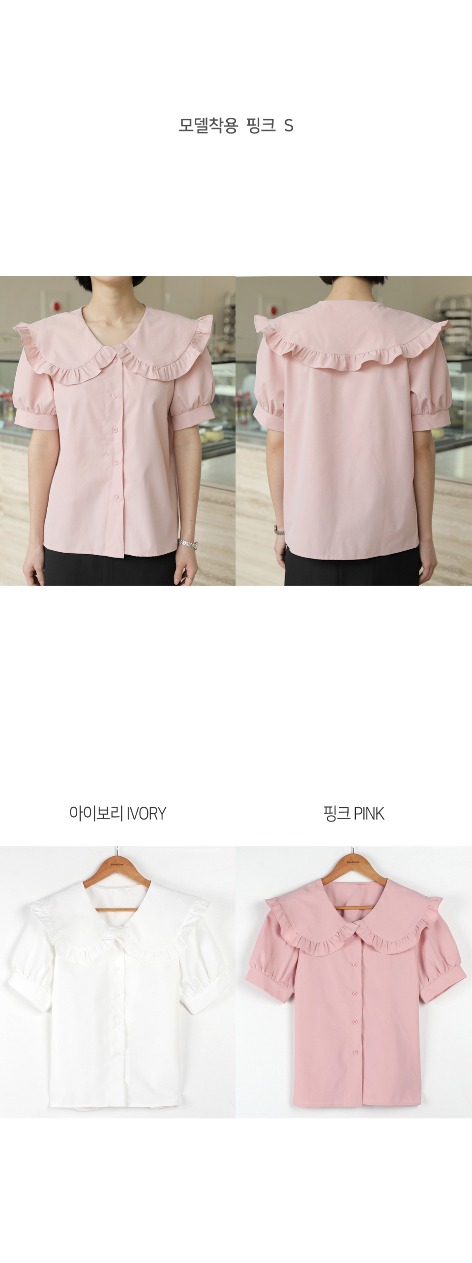 빅 프릴 카라넥 퍼프 반팔 블라우스