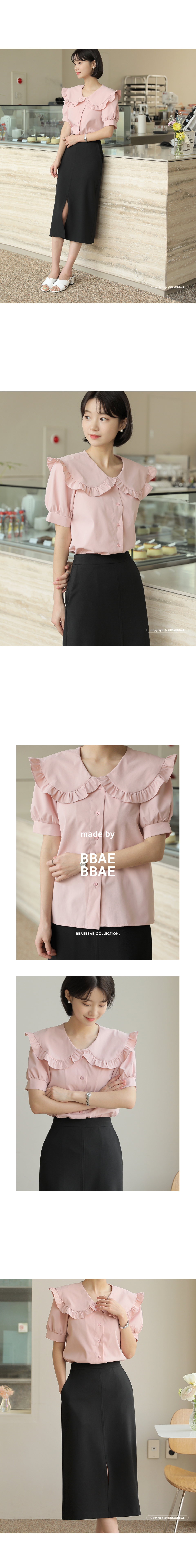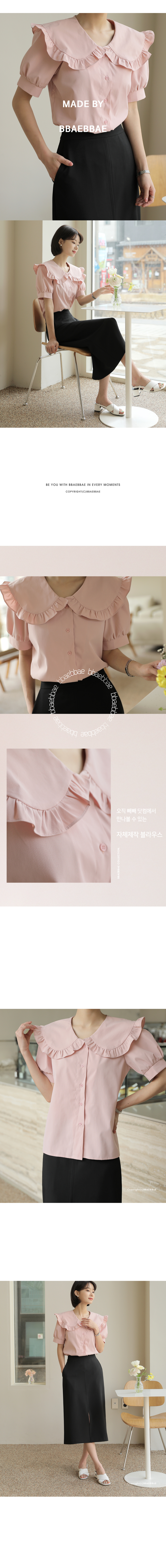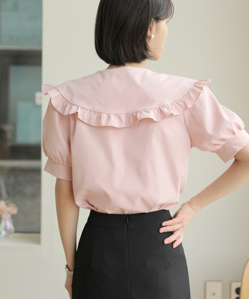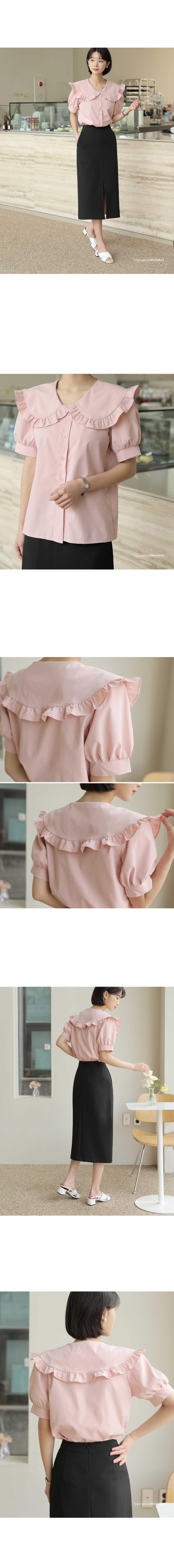 빅 프릴 카라넥 퍼프 반팔 블라우스