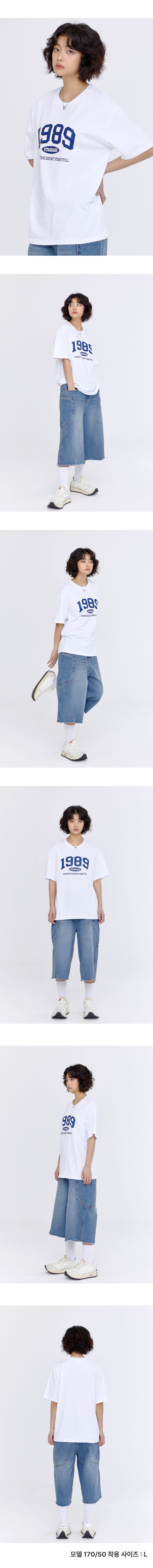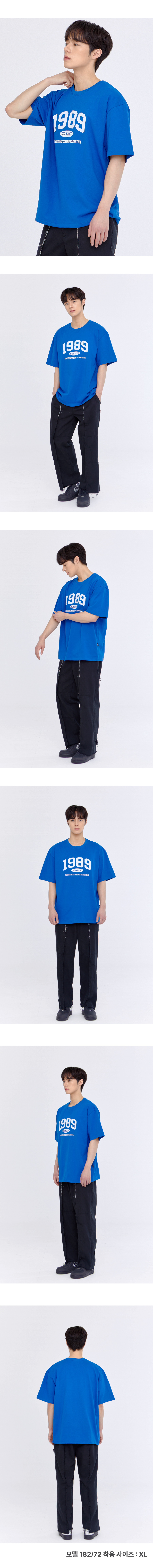 오버핏 크루넥 브루클린 반팔 티셔츠 화이트블루