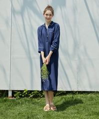 (W) 핀 스트라이프 숏 슬리브 세트 (스카이 블루)