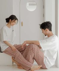 [2PACK] 커플 베이직 깅엄체크 9부 파자마 바지