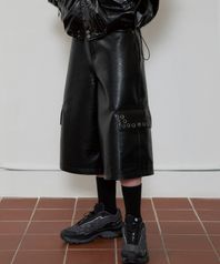 eyelet leather bermuda pants(black)