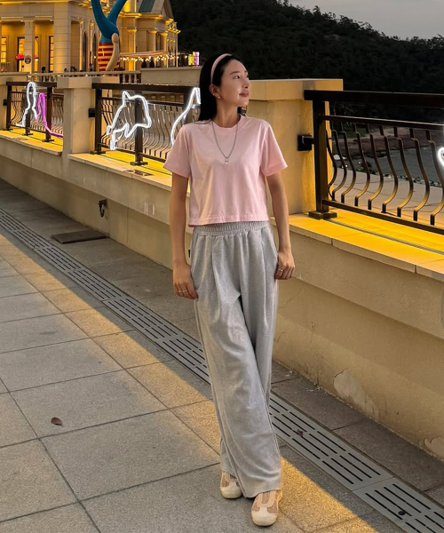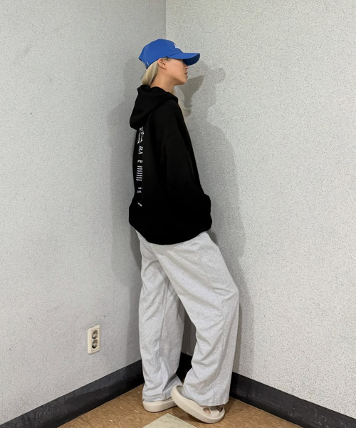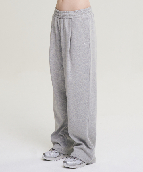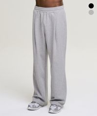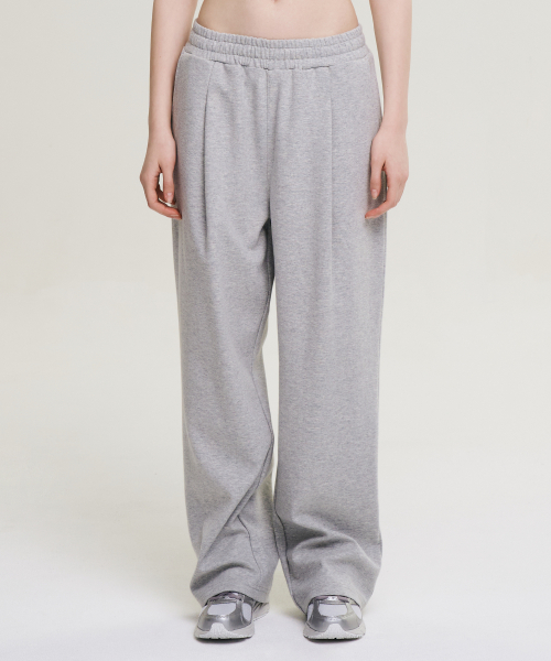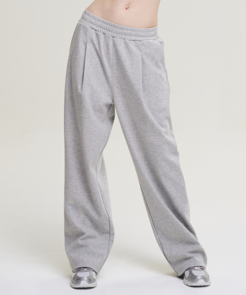 원턱 자이언트 핏 프레시 와이드 슬렉스 스웨트 팬츠 W 멜란지그레이