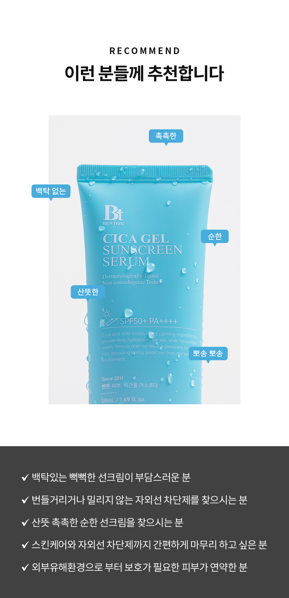 벤튼(BENTON)은 유해 성분을 원천 배제하며, 고품질과 합리적 가격의 건강한 화장품을 만드는 브랜드입니다.
