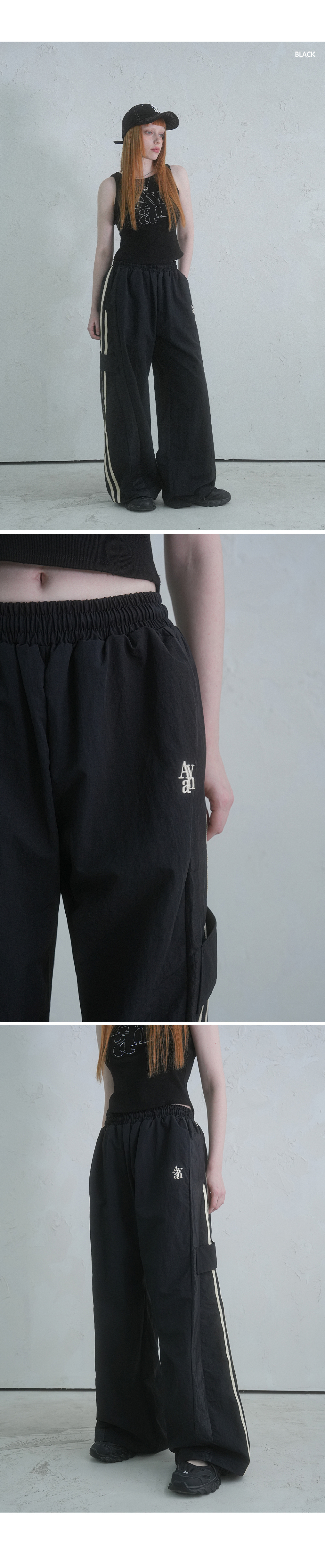 파이핑 라인 트랙 스트링 팬츠 (BLACK)