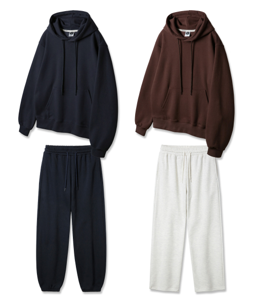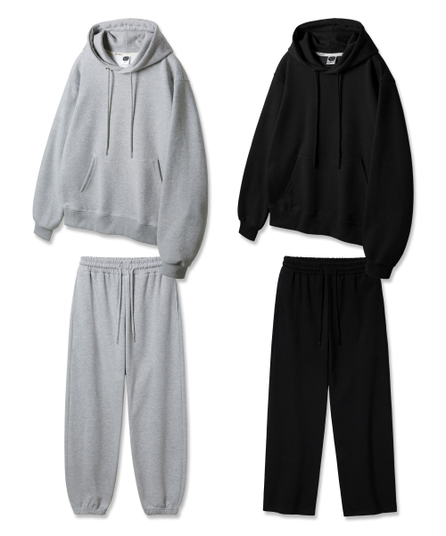 [SET] 레귤러핏 무지 후드티 조거/세미 와이드 트레이닝 팬츠 셋업