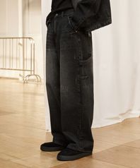 데미지 워시드 카펜터 데님 팬츠 (BLACK)