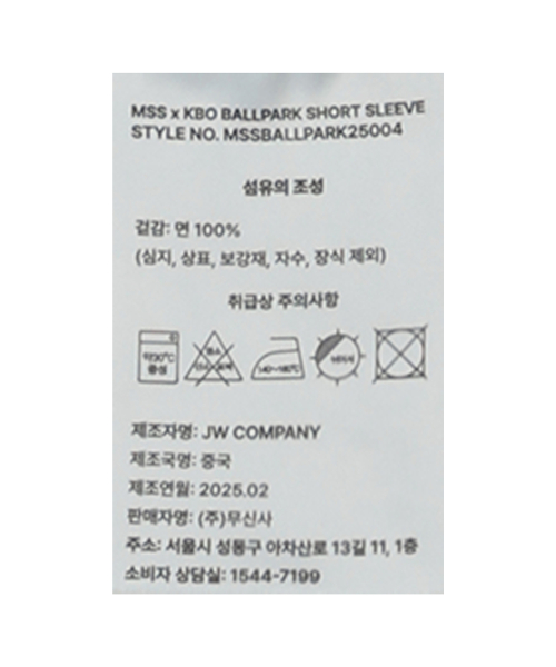 MSS x KBO 볼파크 반소매 티셔츠 화이트 [부산 롯데 자이언츠]
