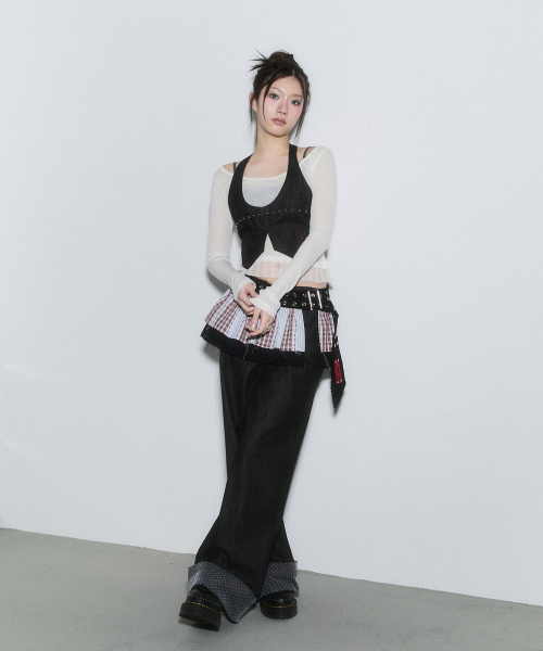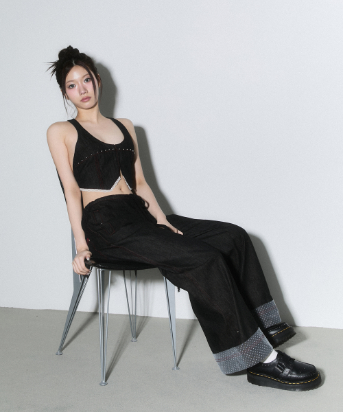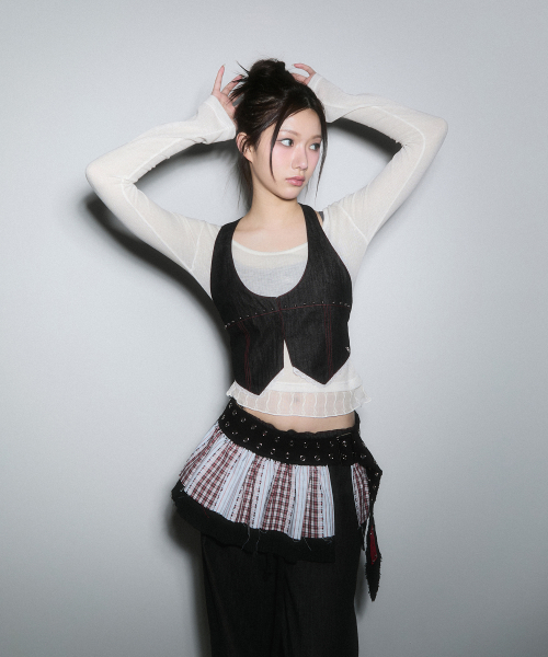 - 러프한 무드의 데님 홀터넥 베스트