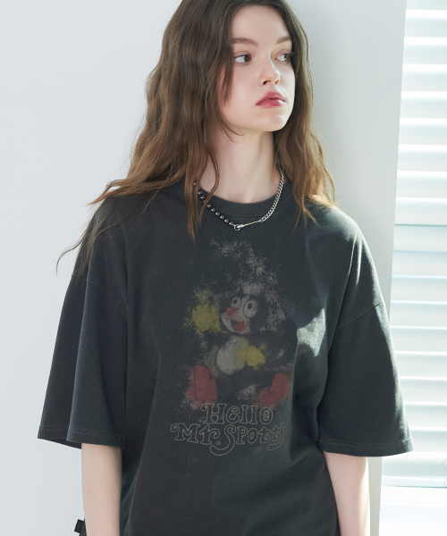 HELLO SPOTTY 피그먼트 반팔티 스모크블랙