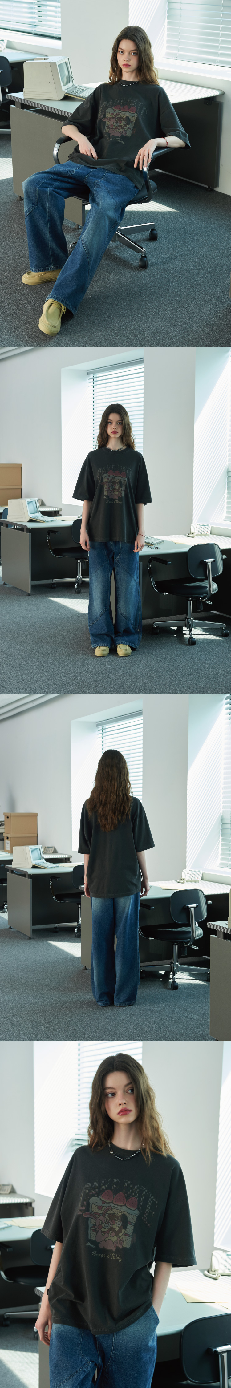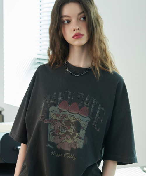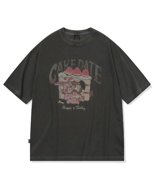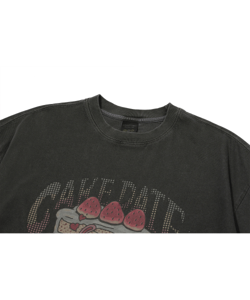 케이크 데이트 피그먼트 반팔티 스모크블랙