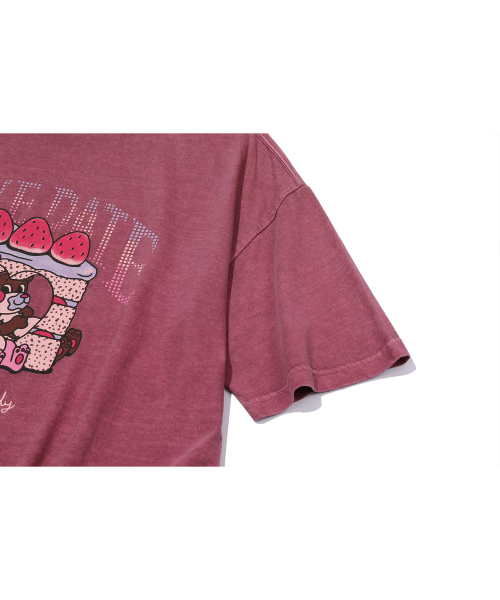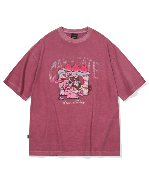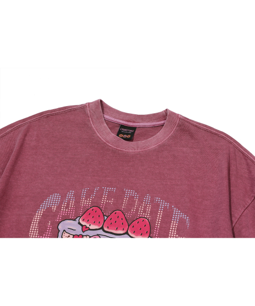 케이크 데이트 피그먼트 반팔티 더스티핑크